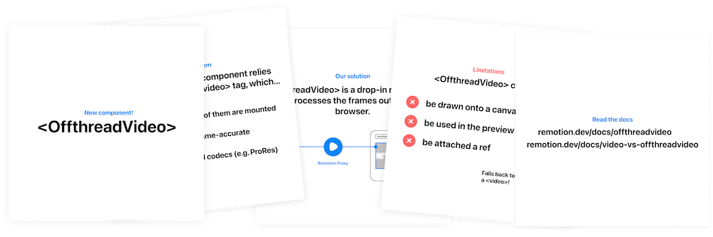 This component is an alternative to the <Html5Video> component that extracts frames using FFMPEG and renders them inside an <Img> tag.